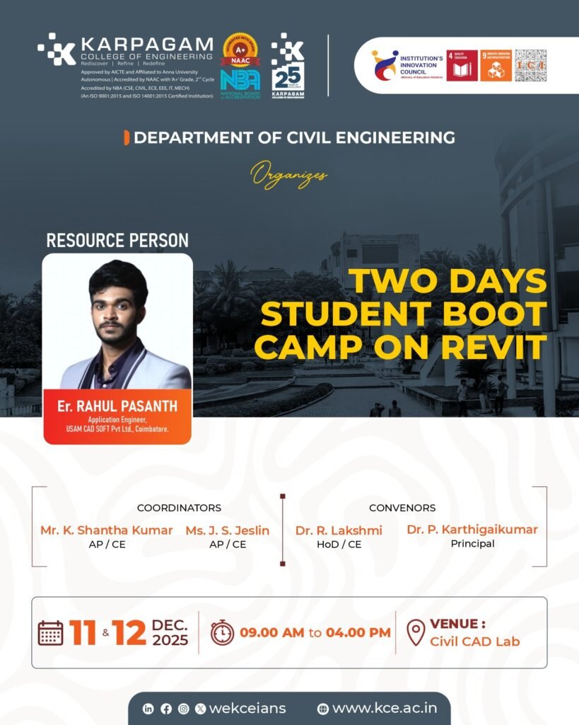On 30th August 2025, Department of CT and CD, Karpagam College of Engineering, Coimbatore conducted the Career Awareness Program on “Empowering Careers through IT Skills”. The program started at 1:00 PM with a brief introduction about resource person. The Warm Welcome Address was given by Dr. C. N. VANITHA HOD, KCE, the Speaker Introduction was delivered […]