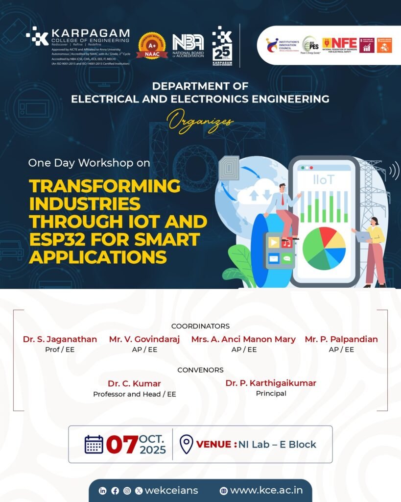 One Day Workshop on Transforming Industries through IoT and ESP32 for Smart Applications