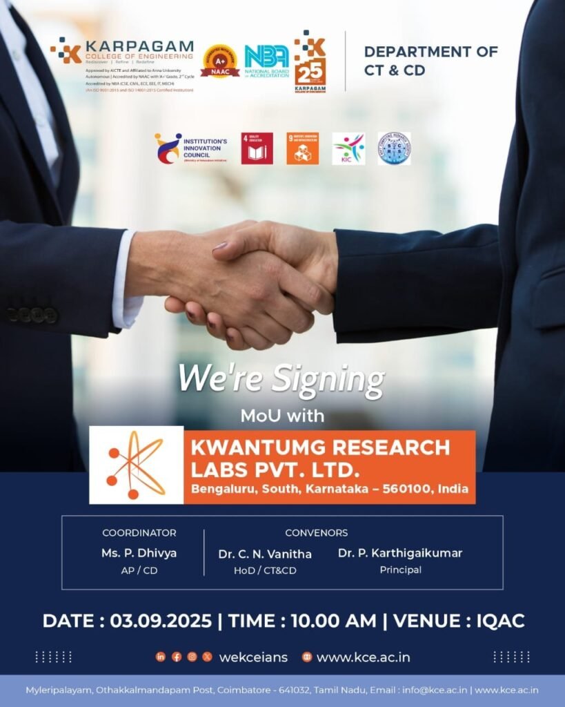 On 03 september 2025 Department of CT and CD, Karpagam college of Engineering , Coimbatore Conducted the workshop on Workshop on “Exploring Quantum Advantage in Machine Learning “ the program started at 1.00 pm with a brief introduction about resource person . the warm welcome address was given by Dr.C.N VANITHA HOD, KCE, the speaker […]